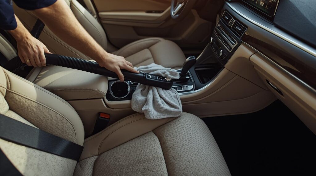 Next, we vacuum, shampoo, and steam clean the cabin including carpets, seats, dashboard, and door trims — removing stains, dust, and odors.